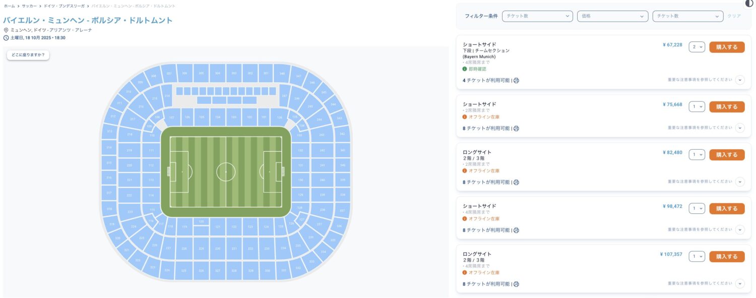 特に人気試合でもチケットが見つかる可能性が高く、日本からも安心して利用できるため、多くのファンに利用されています。
