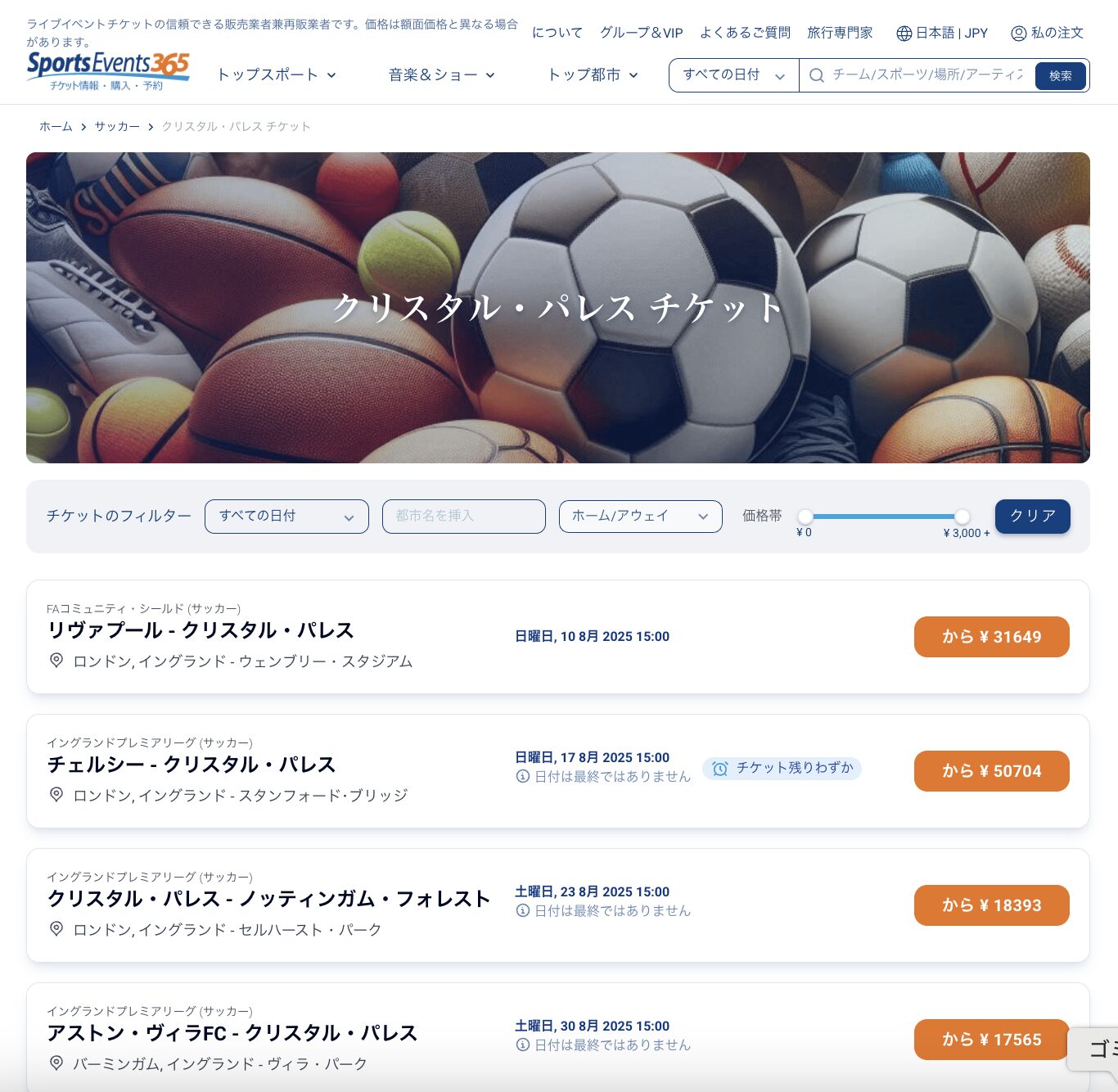この記事では、クリスタルパレスのチケットを確実に手に入れるための方法を「公式サイトでの購入」「リセールサイトでの購入」「ホスピタリティチケット」の3つに分けて詳しく解説します。