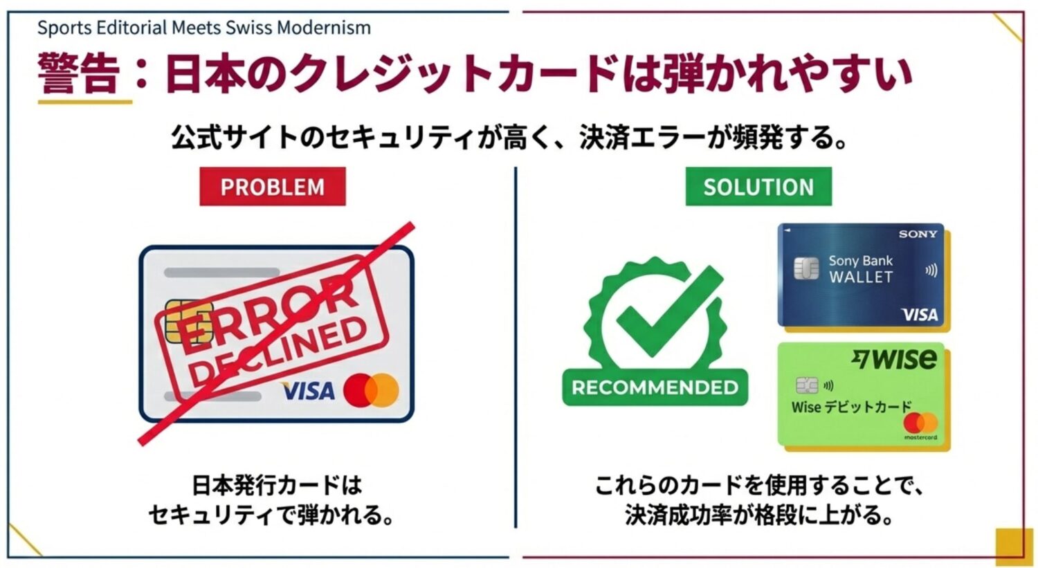 しかし、正しい知識と事前準備さえあれば、代理店に高額な手数料を払うことなく、個人手配でも定価で安全にチケットを入手することは十分に可能です。