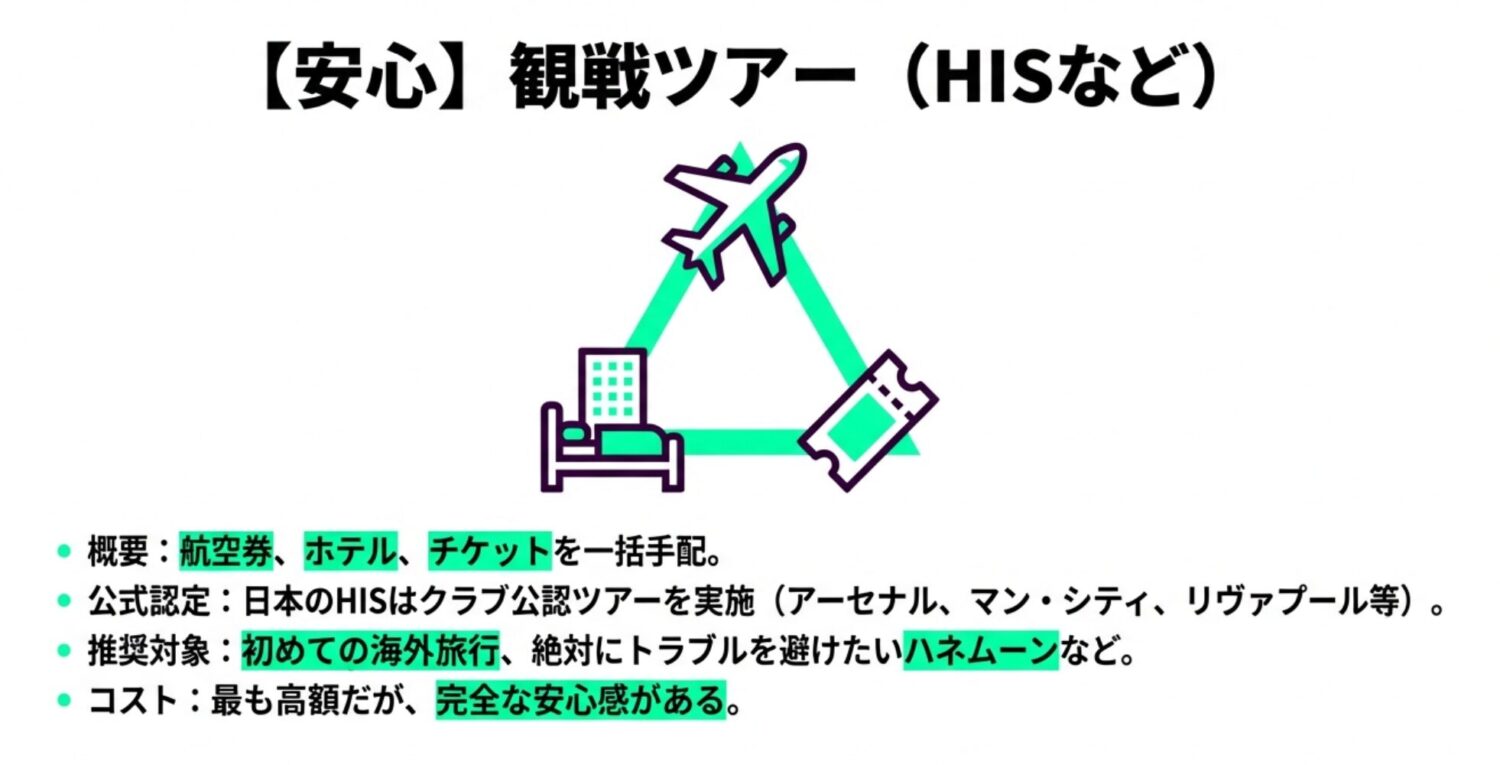 イギリスまでの渡航、宿泊、そして試合チケットの手配をすべて自分で行うのは、初めての方には難しく感じられるかもしれません。
