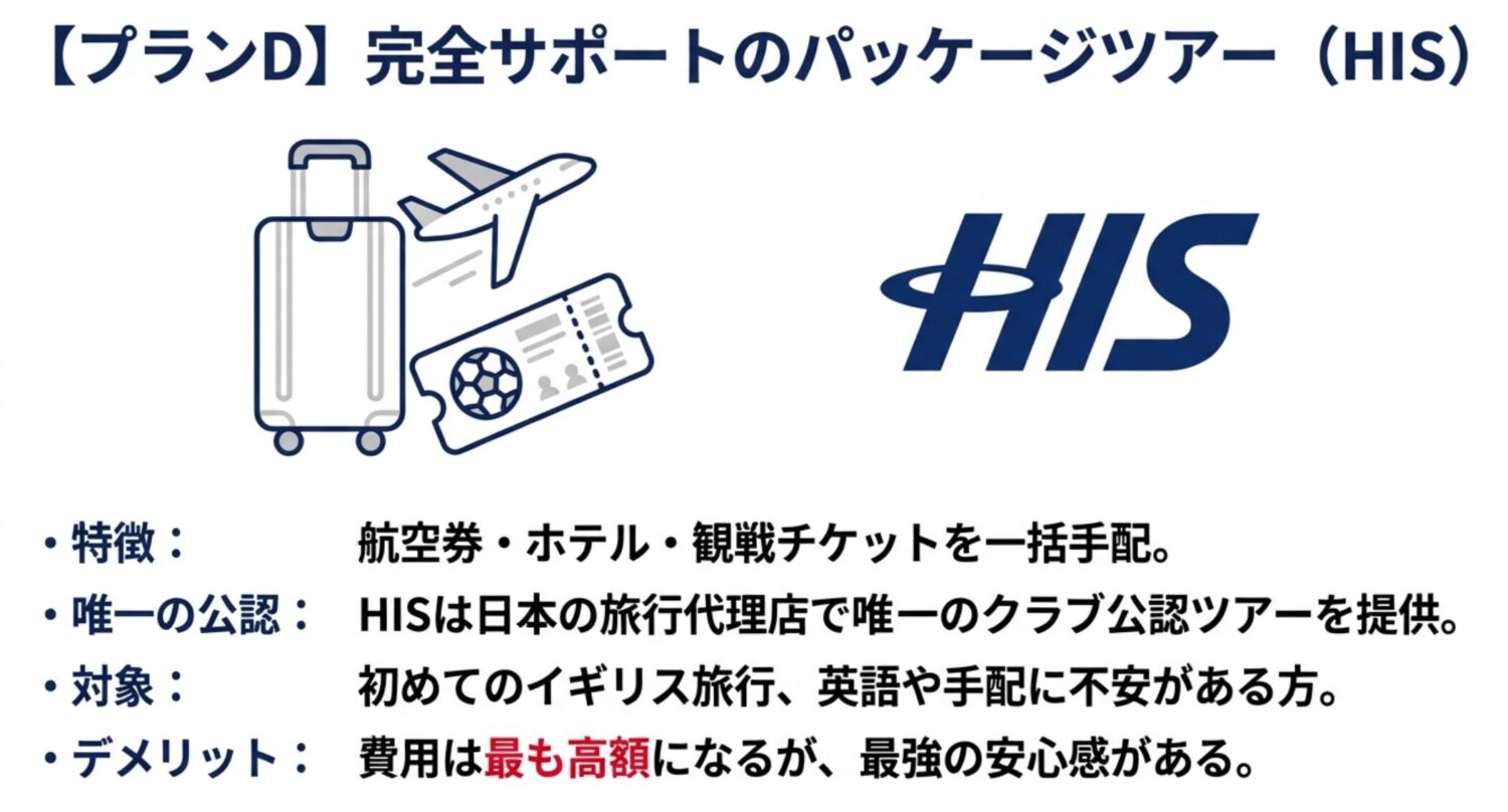 イギリスまでの渡航、宿泊、そして試合チケットの手配をすべて自分で行うのは、初めての方には難しく感じられるかもしれません。