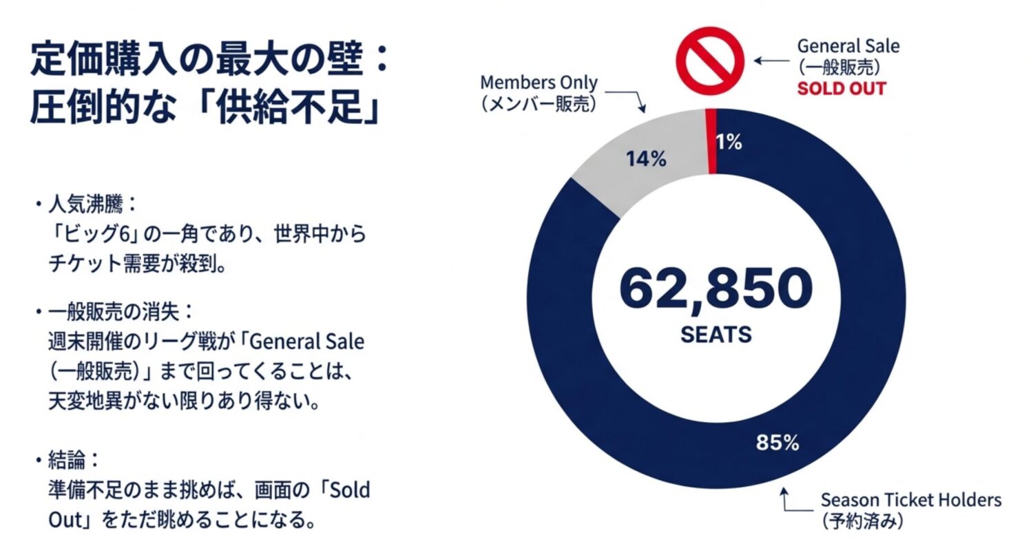 しかし、いざ「トッテナム チケット 買い方」と検索してみると、そこには想像以上に複雑で厳しい現実が待っています。
