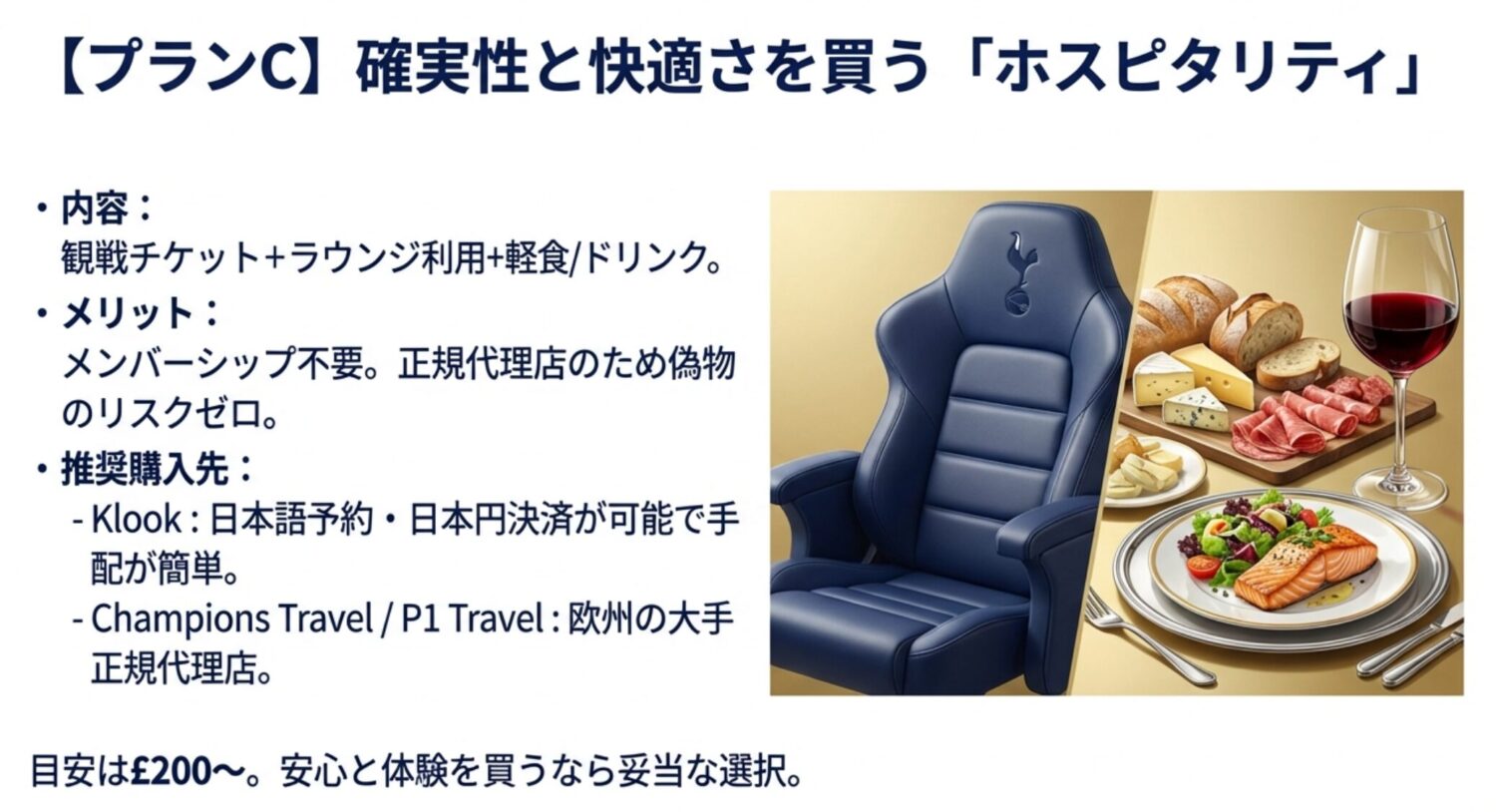 トッテナムホットスパーの試合を観戦する方法のひとつに、ホスピタリティチケットがあります。