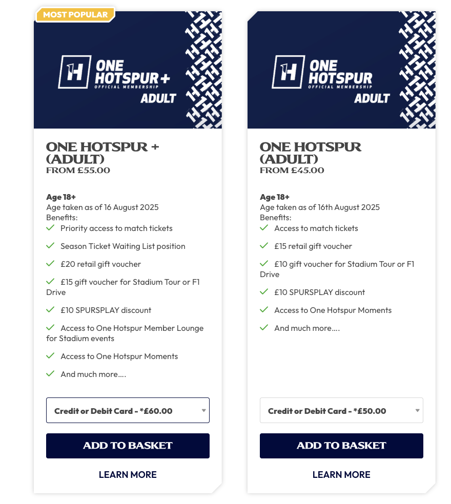 - 火曜日 10:00 (英国時間):One Hotspur (Standard) メンバー向け販売開始