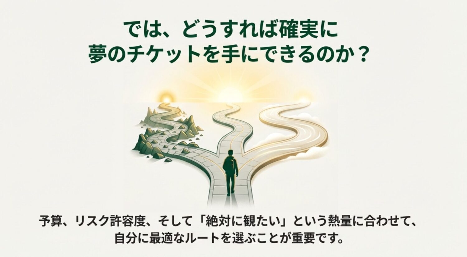 情報量が多くて大変だったかもしれませんが、ここまで読んでくださった皆さんは、もうチケット購入の「基礎知識」はバッチリです。