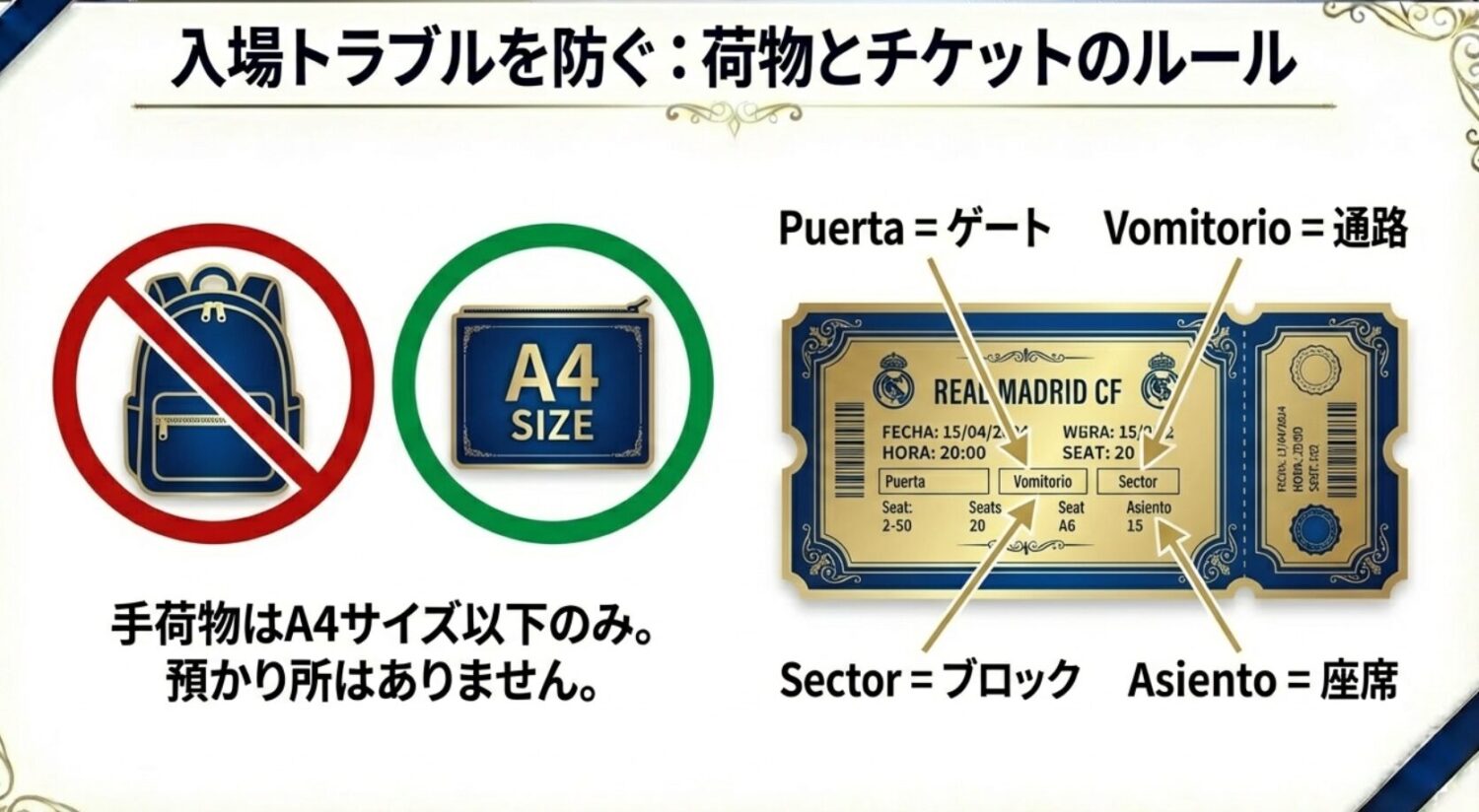 スタジアム入場:チケットの読み方と手荷物ルール