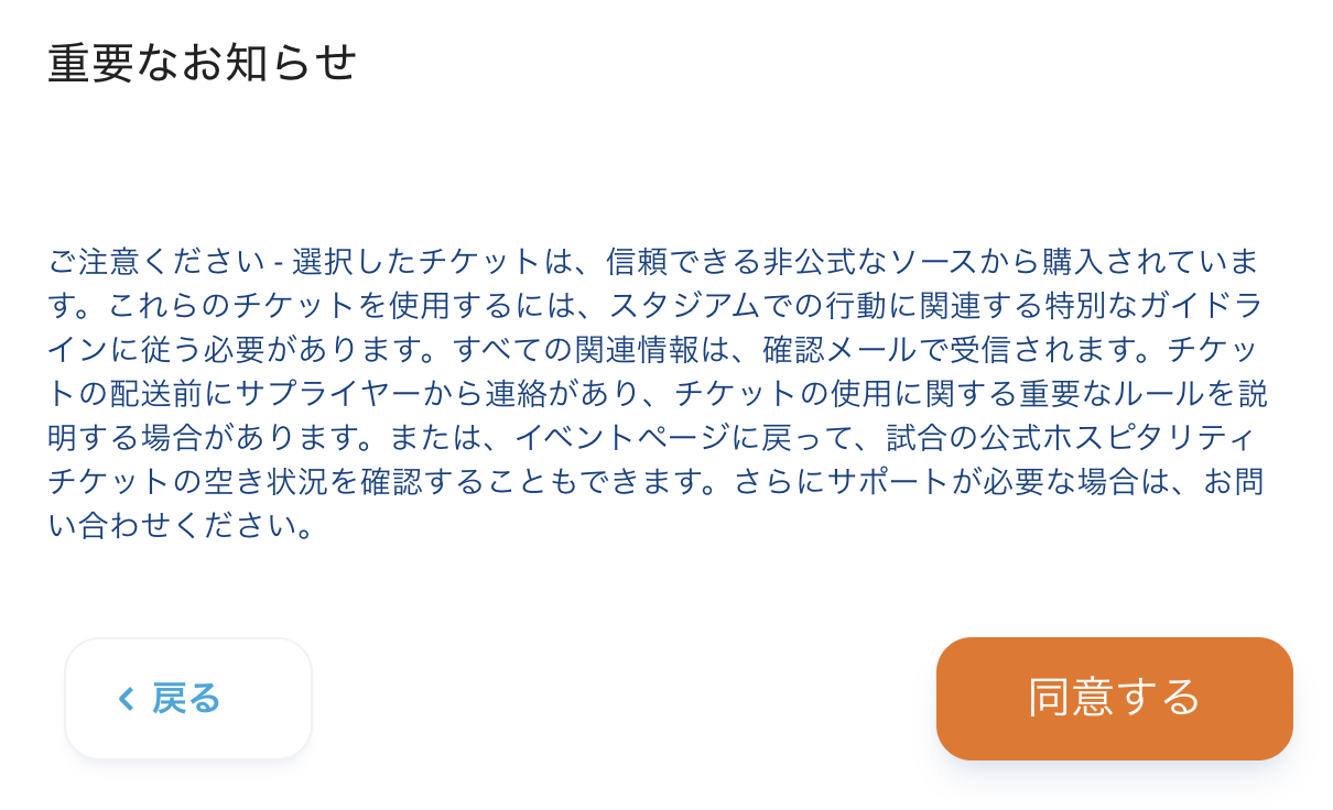 つまり、私たち購入者から見れば、非公式チケットであっても「入場できること」と「万が一の際の補償」がSportsEvents365によって約束されている、ということです。