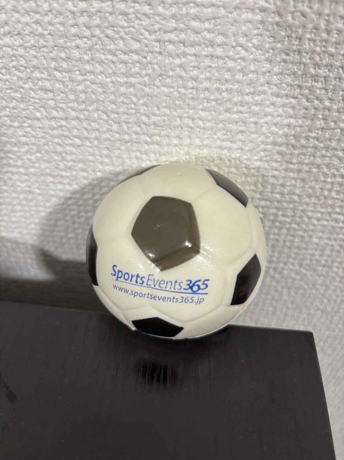 対談の最後には、記念品として社名のロゴが入った可愛らしいミニサッカーボールをお土産にいただきました。