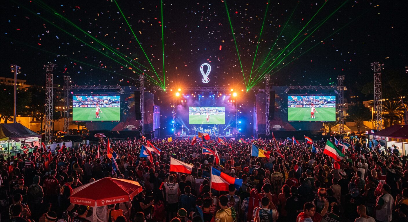 - スタジアム級の熱狂!巨大スクリーンでのライブ中継 想像してみてください。数万人のファン仲間と肩を組み、スタジアムさながらの雰囲気の中、1,800平方メートル(カタール大会の実績)もの巨大スクリーンに映し出される死闘を見守る… 。ゴールの瞬間には地鳴りのような歓声が響き渡り、会場全体が一つになる一体感は、鳥肌モノの体験です。